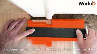 Praktisk profilmall från Work>it för utskrift och kopiering av former och profiler. Lämplig för t.ex. golv och mattor samt vid montering av bänkskivor vid mätning av vinklar, oregelbundna runda och böjda linjer. Tryck helt enkelt konturmarkeringsspaden nära profilen så att den enkelt och snabbt kan överföras till arbetsstycket.